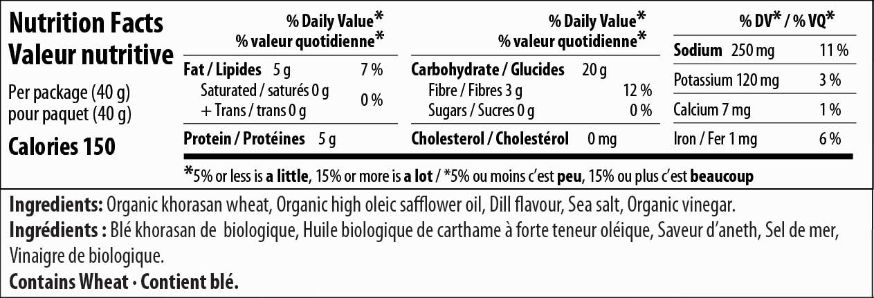 Ingredients: Organic wheat and other clean, plant-based ingredients with natural dill pickle seasoning.