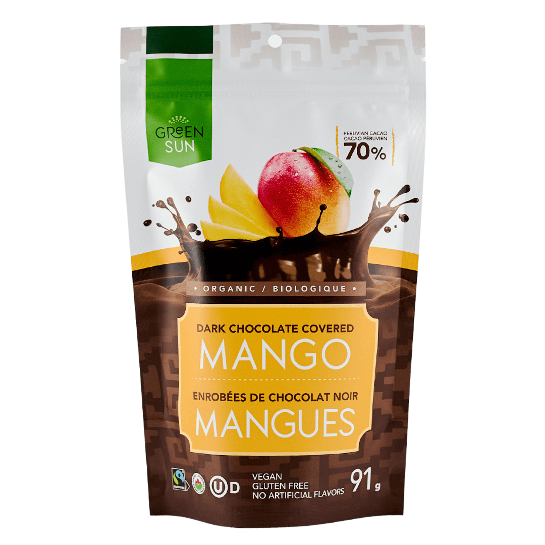Enjoy the tropical sweetness of Green Sun Dark Chocolate Covered Mango – a decadent snack that’s as wholesome as it is delicious. Each piece features organic dried mango coated in smooth 70% Peruvian dark chocolate, creating a balanced, plant-based indulgence.