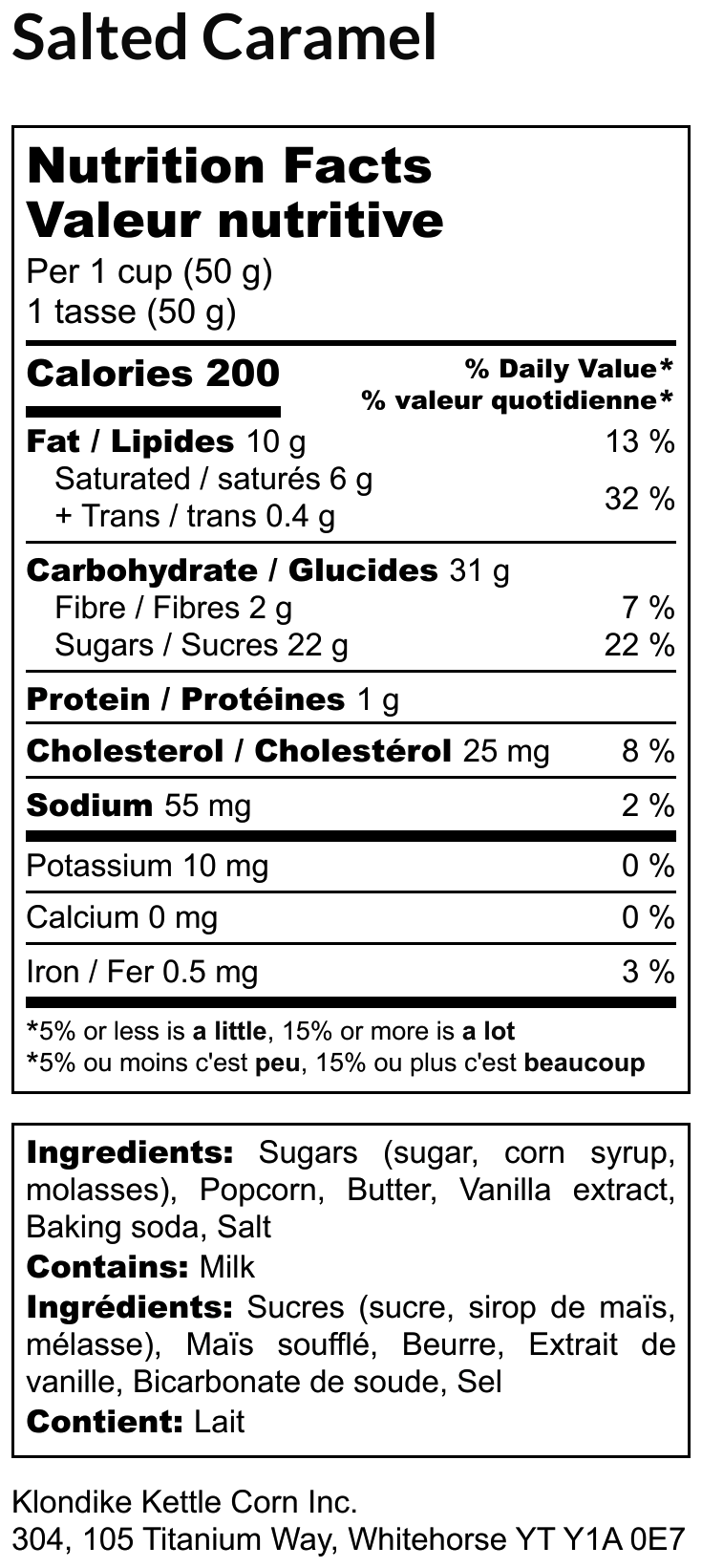 Klondike Gourmet Popcorn – Salted Caramel | 200g | Handcrafted, Gluten Free, Canadian Made
