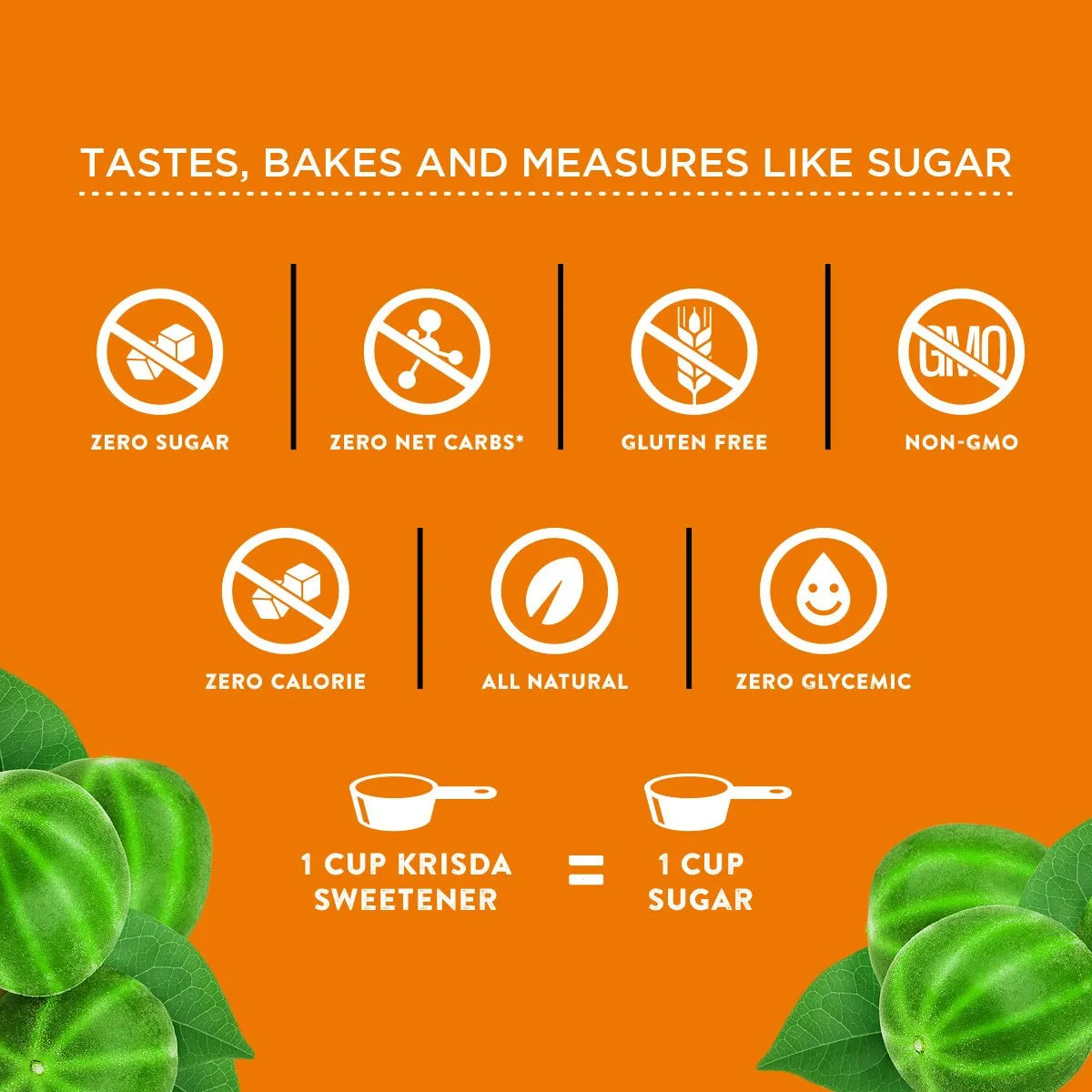 Krisda Monk Fruit Sweetener | Zero Sugar, Non-GMO, Keto-Friendly, Gluten-Free Natural Sweetener