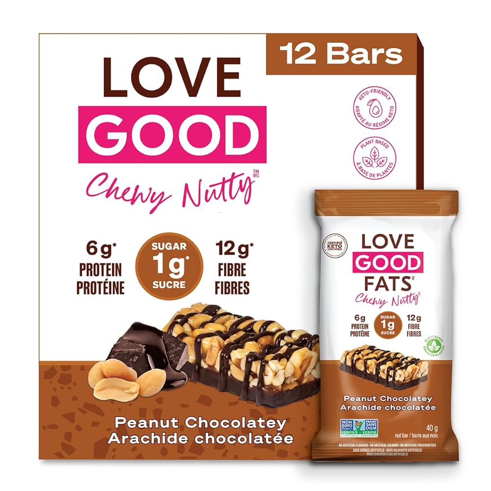 Love Good Fats Chewy-Nutty Peanut Chocolatey Keto Bar | Low-Carb, Gluten-Free, High-Protein Snack