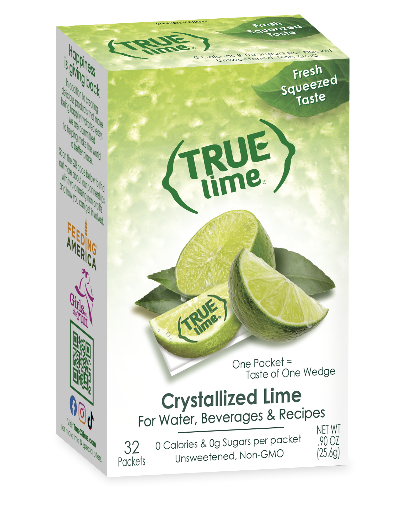 Fresh citrus flavour made simple! True Citrus Crystallized Lime Packets are crafted from the juice and oils of fresh citrus, cold-pressed and crystallized to lock in real fresh-squeezed taste. Perfect for water, teas, recipes, cocktails, and more—without the mess, waste, or inconsistency of fresh fruit.