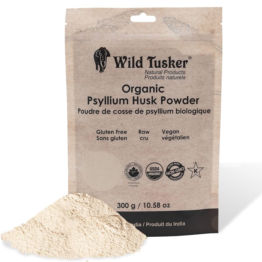 Wild Tusker Organic Psyllium Husk Powder 300g – Gluten-Free, Keto-Friendly, High Fibre, USDA & Canada Organic, Non-GMO, Vegan